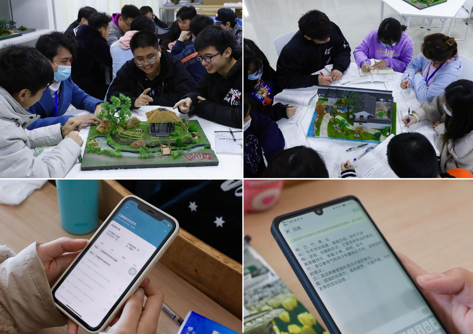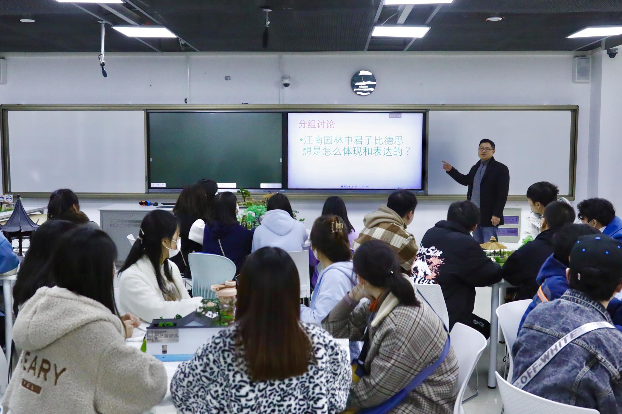 “君子比德”——清斯濯缨,浊斯濯足;智者乐水,仁者乐山。叶琦老师将思想概念引入实际案例,以讲授-实践相结合的方式向学生详细描述比德思想在园林文化艺术中的体现。在课堂分组讨论环节,同学们积极思考,将自身所理解的君子比德文化贯彻实际生活。一砖一瓦,三尺林木,繁花流水,墨盏山岩,经由叶琦老师娓娓道来。不再只是单纯的美景,陈砖厚瓦,德志尽显,花柳月下,心之所往。一座园林,便是君子品德的象征。将思政元素全面融入专业教学内容,让学生在做中学、在学中感,内化于心、外化于形状。“比德”思想所展现的不仅是园林文化艺术的创作,更是关于一场青年学生道德文化价值的养成教育。