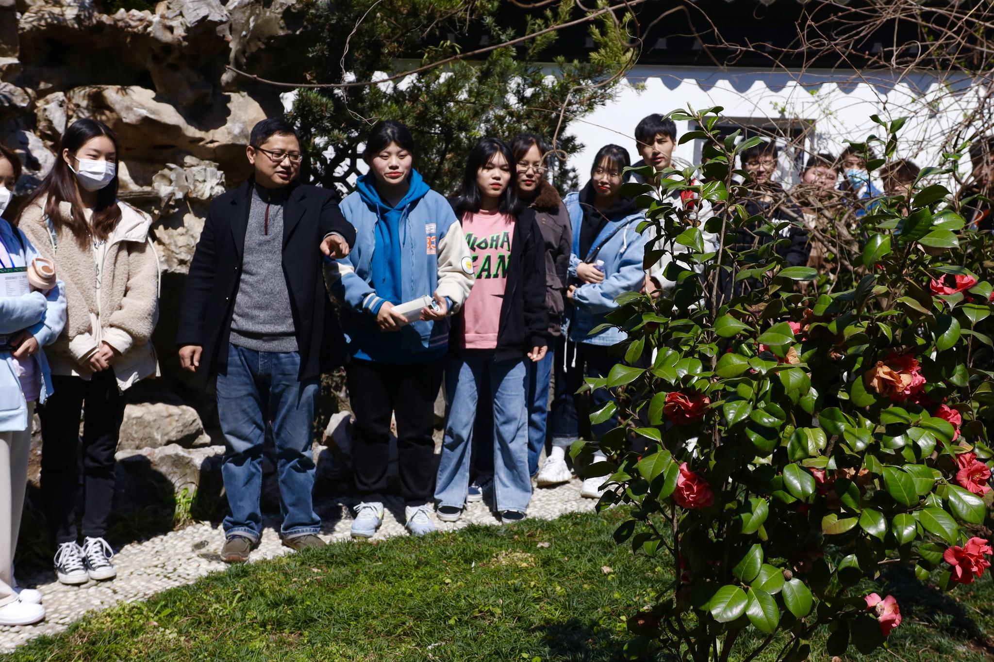 课堂不止局限于教室,草木人间,皆是诗篇。叶琦老师带领学生来到户外,观花木池石,赏亭台檐园。我们与前人并肩,并谈,并思,更深切的感受其中的君子雅韵。