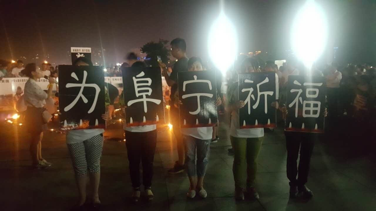 鹭天龙资讯6月26日盐城讯 6月23日下午14:30,江苏盐城市阜宁、射阳等地9个镇区突发龙卷风冰雹严重灾害。已造成98人死亡,846人受伤。25日晚,在阜宁县白天鹅公园数百位群众自发组织祈福会,祭奠在本次灾害中的遇难者,为阜宁祈福。