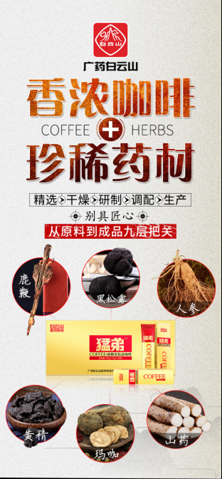 猛弟咖啡,广药白云山精选全世界优质原料,汇集行业高素质、高学历、高能力人才形成一流研发团队,传统中药+国际先进科学技术,从原料到成品九层把关,以鹿鞭、黑松露、人参、黄精、玛咖、山药为原材料,结合现代人的生活习惯,成功推出猛弟咖啡,香浓咖啡+珍惜药材,从根本上解决男性问题,帮助了数亿人解决了健康难题,重回猛男时代,受到了社会的广泛关注。