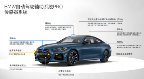 再来看看豪华品牌车型宝马iX3。我们可以看到这套ADAS系统的基础版本是基于Euro NCAP(欧洲新车安全评鉴协会)驾驶辅助测评,不同部署的车型按照评分来设计,也就是以满分四星“VERY GOOD”评级为标杆。由于系统本身是模块化的,所以从单个车型到现在可搭载在十余个车型系列,包含轿车、轿跑车以及运动多功能车,适用于内燃机、混合动力以及纯电动车型(7系、6系、5系、4系、3系,纯电动BMW iX3)。